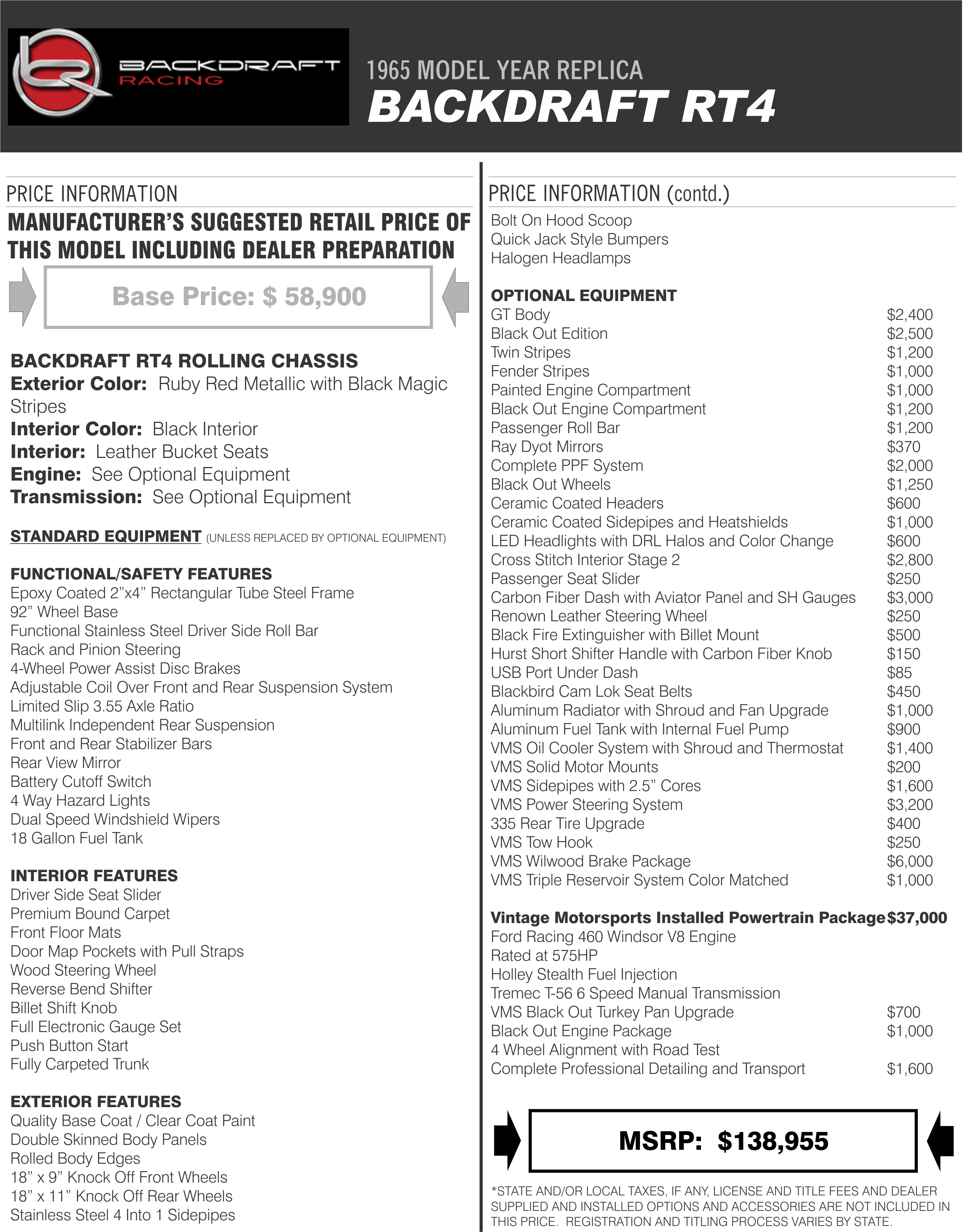 This Backdraft RT4 has been loaded with options over stock and has been completed by the premiere Backdraft Racing builder in the country.