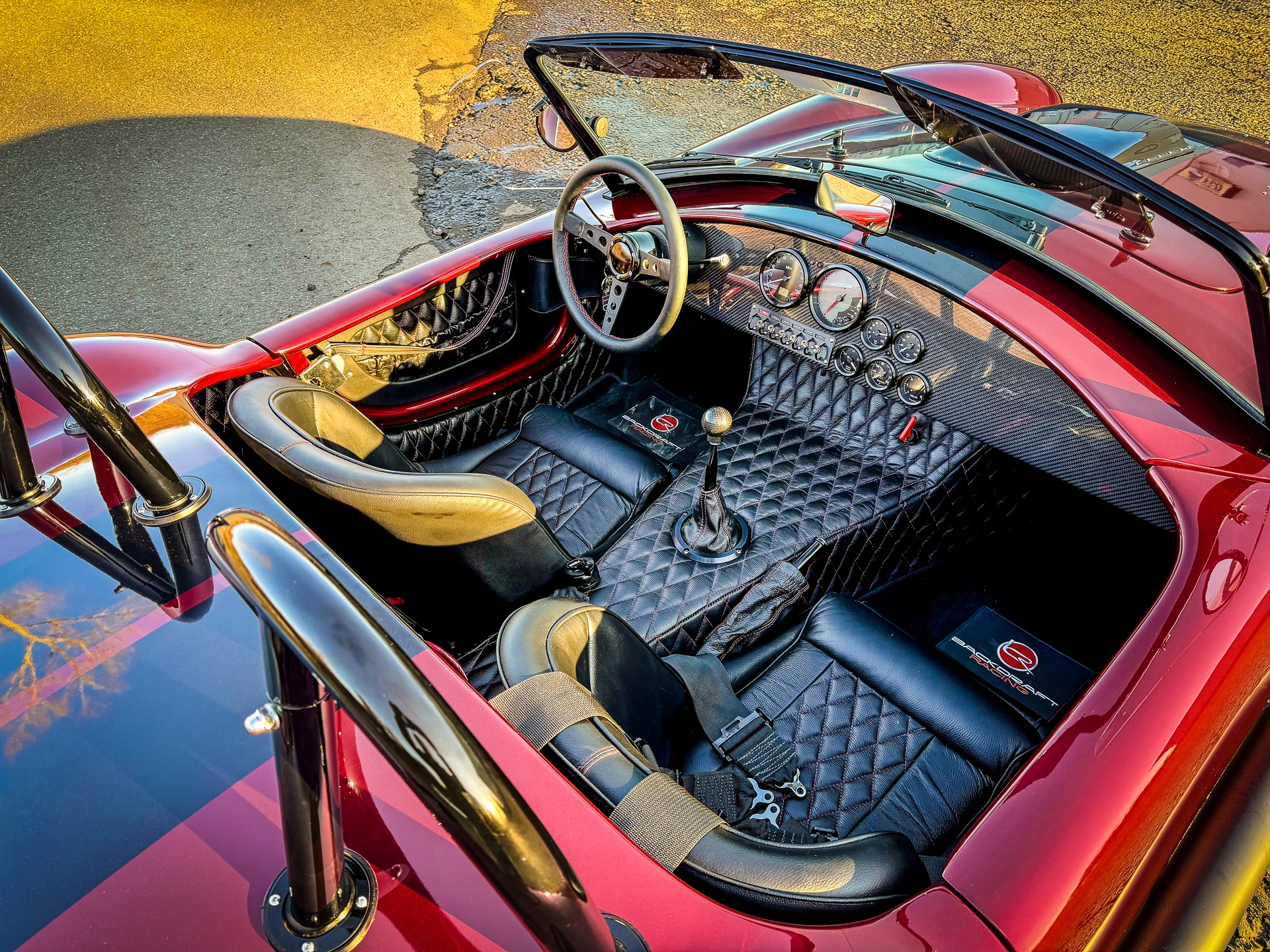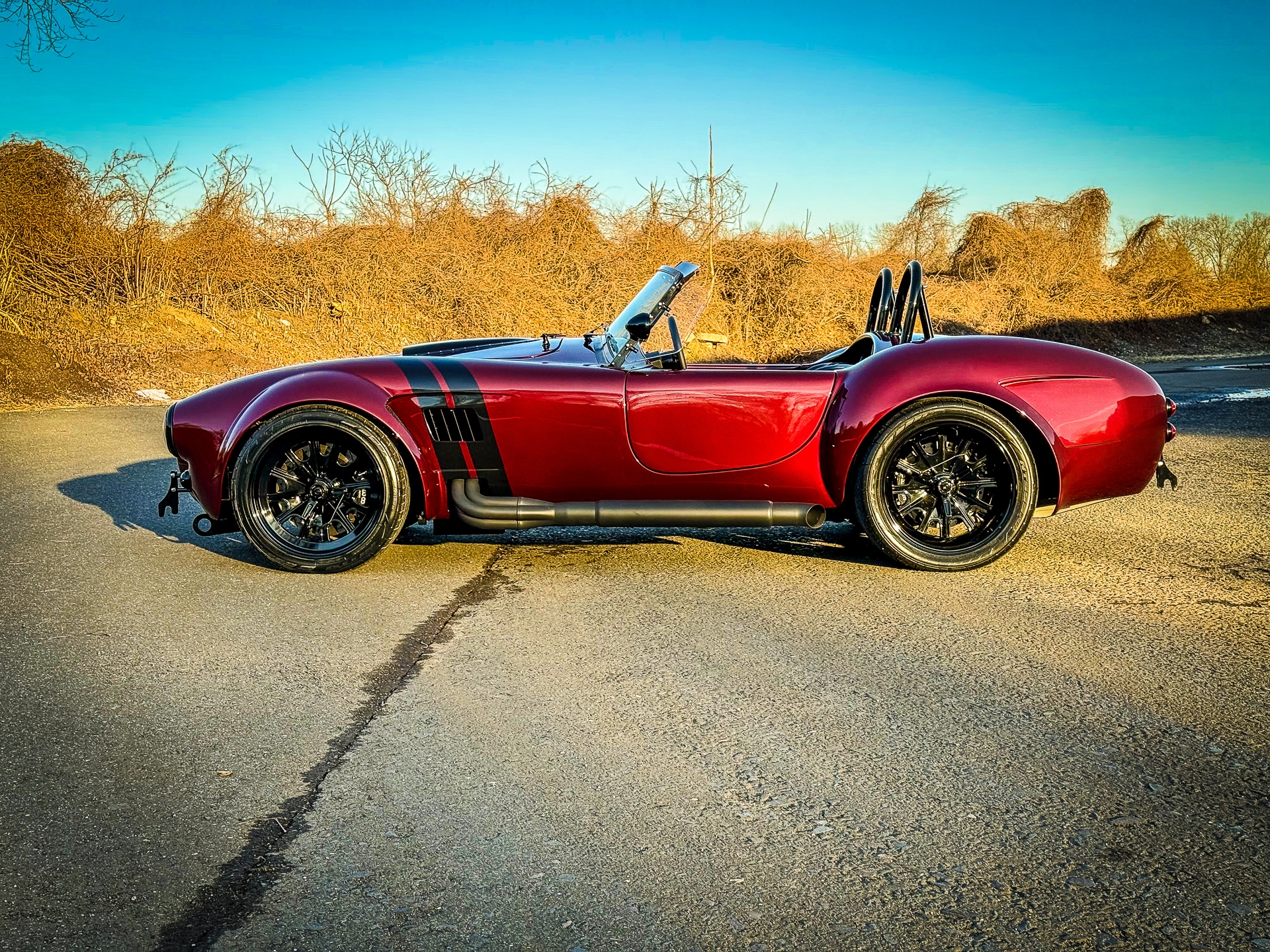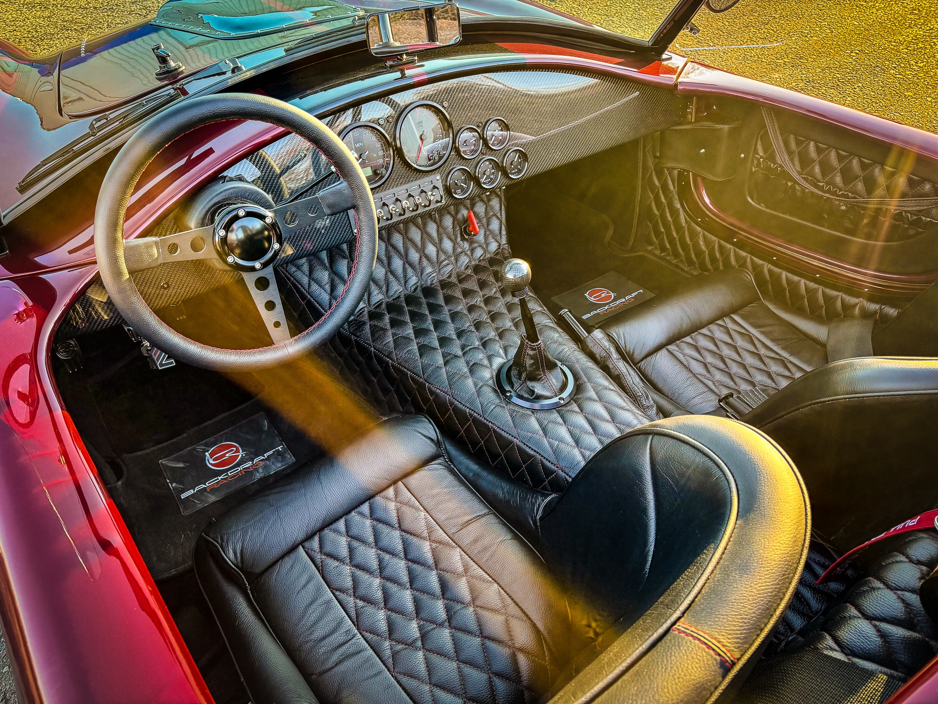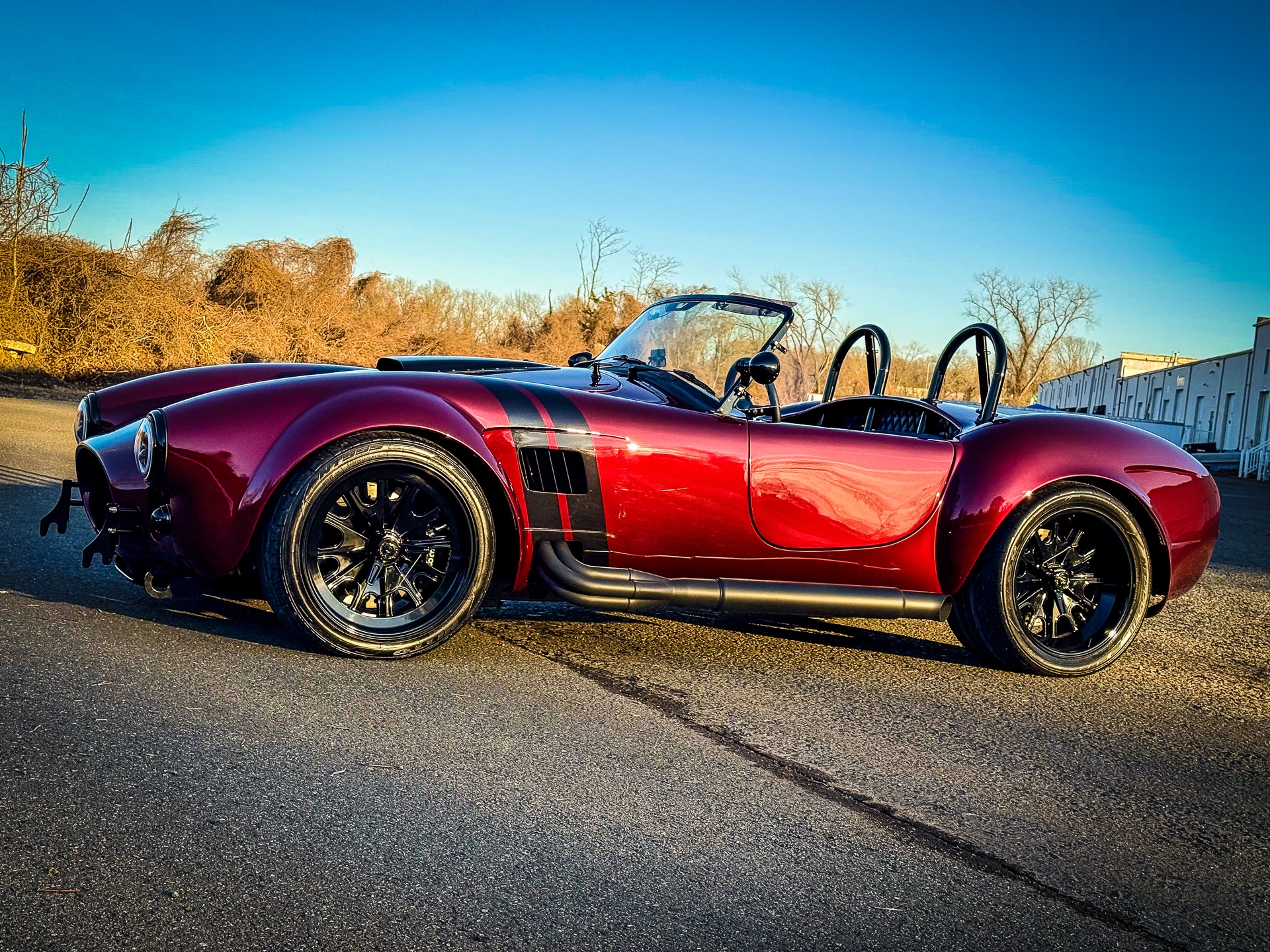 This 1965 Backdraft RT4 roadster was completed by Vintage Motorsports in North Haven, CT in 2022 and has accumulated just over 200 miles. It is powered by a Ford Racing 460ci V8 engine that is rated at 575hp and 575 ft/lbs of torque. The engine is mated to a TREMEC T-56 Magnum 6-speed manual transmission with a McLeod twin-disc clutch and a QuickTime steel bellhousing.