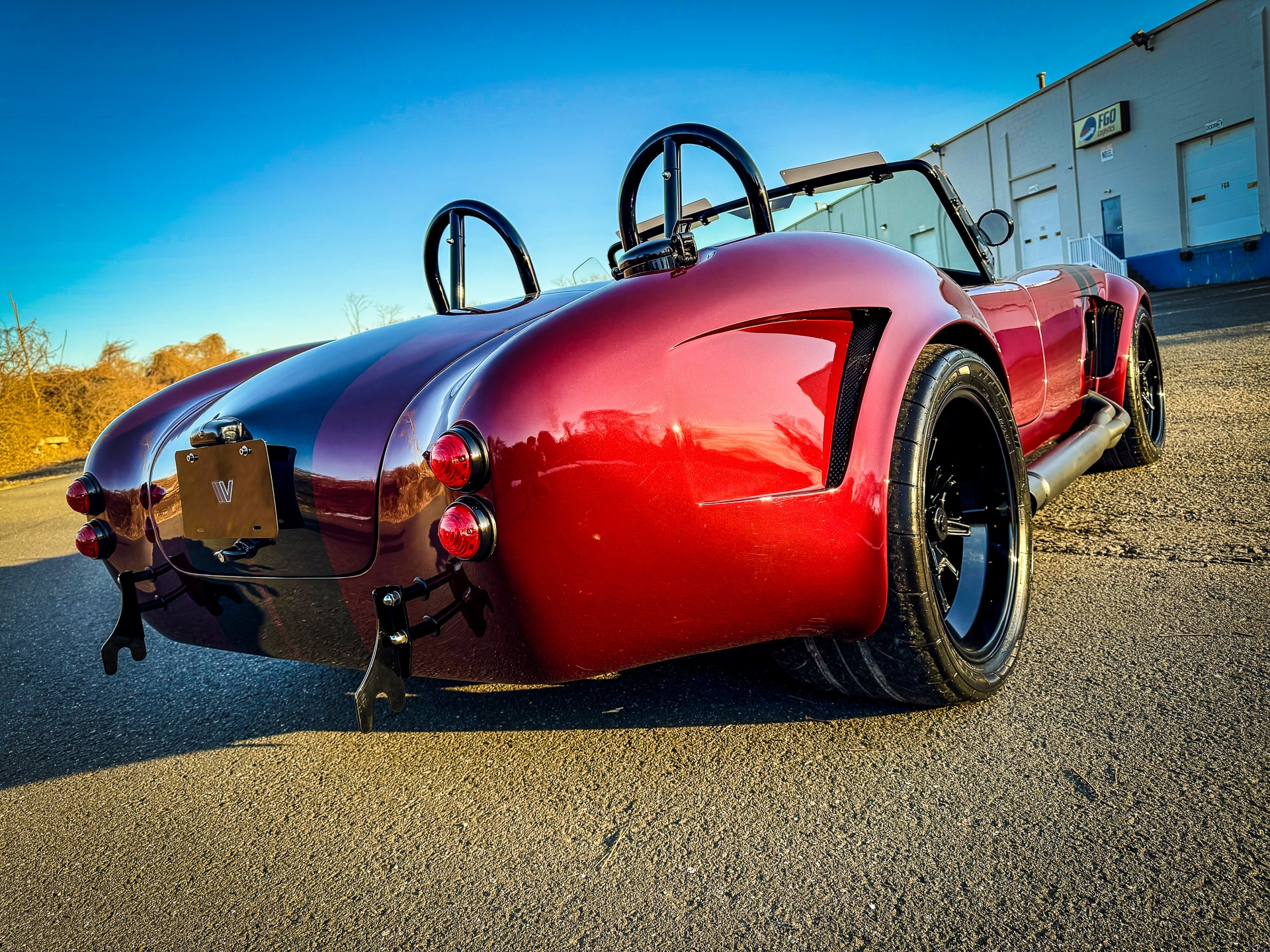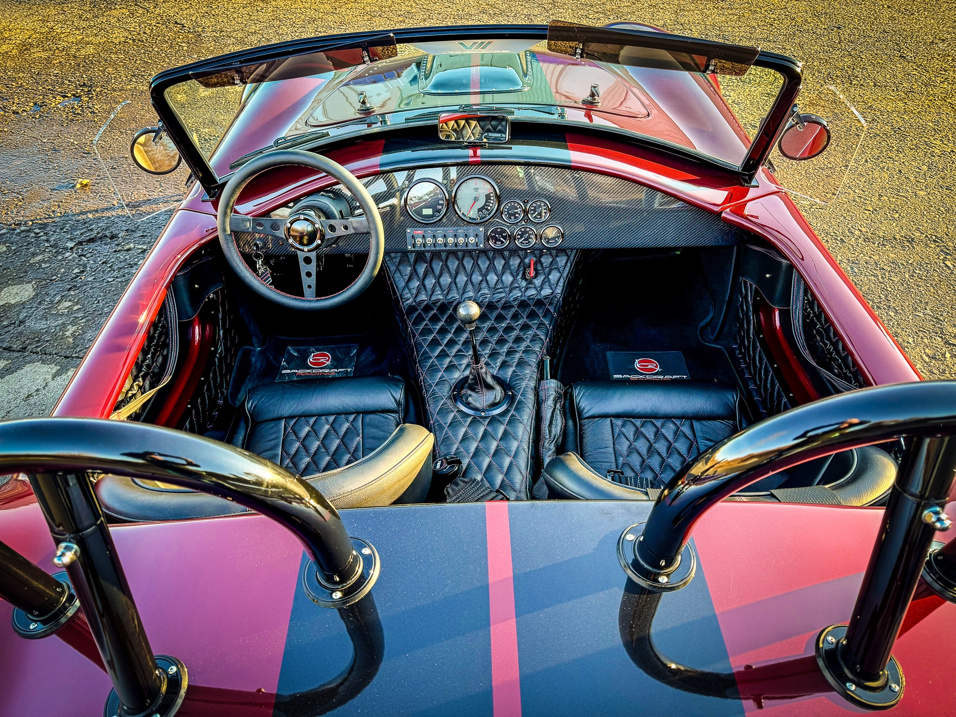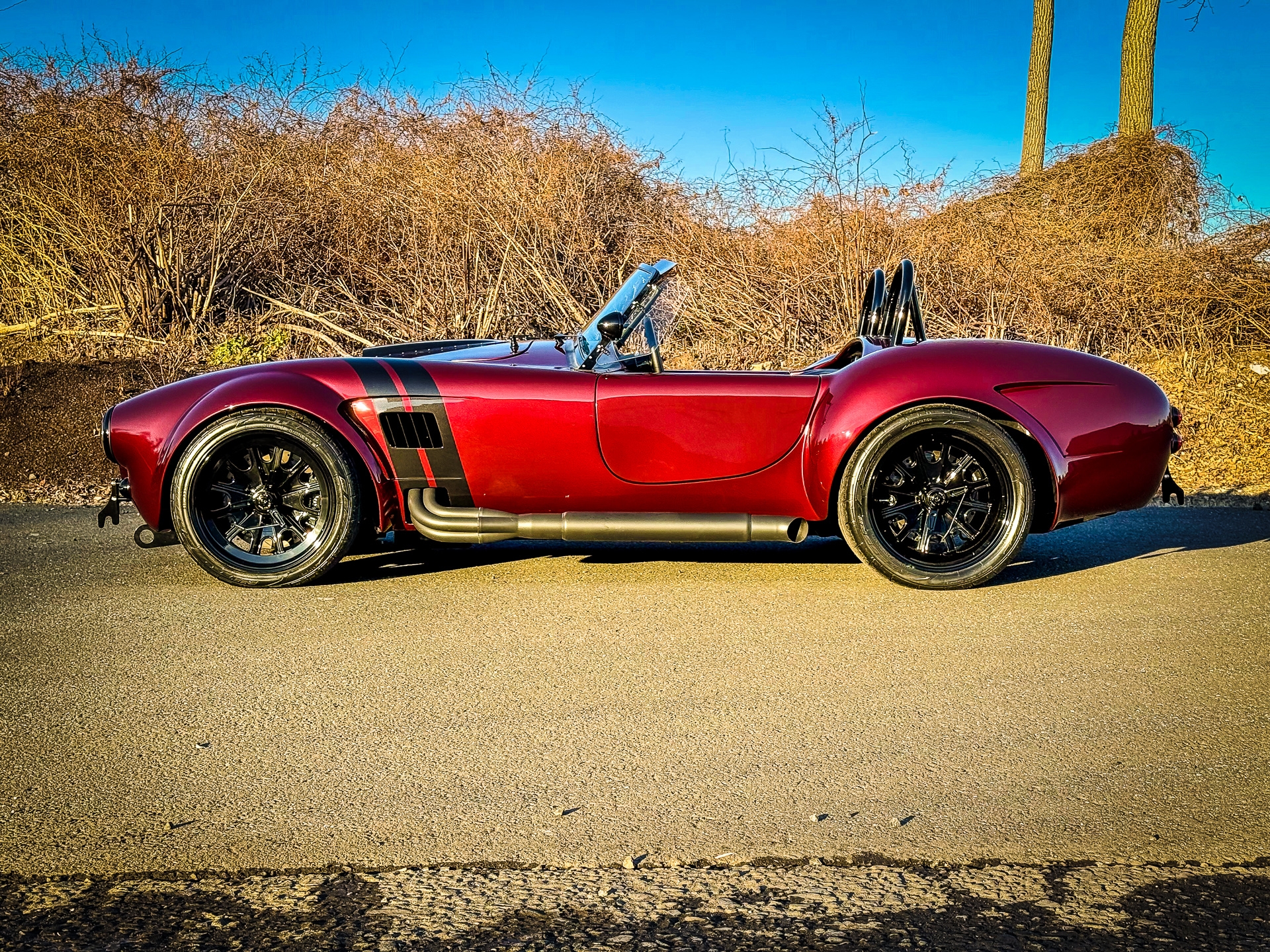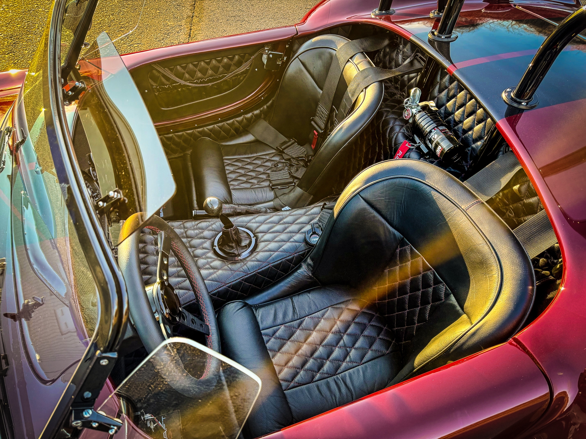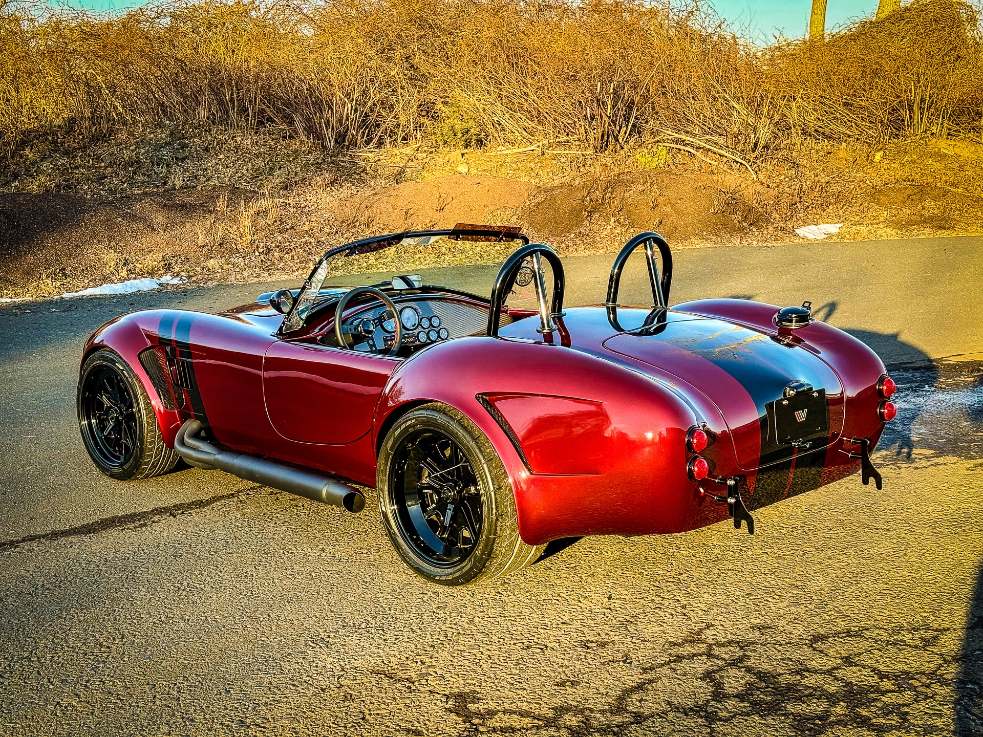 This 1965 Backdraft RT4 roadster was completed by Vintage Motorsports in North Haven, CT in 2022 and has accumulated just over 200 miles. It is powered by a Ford Racing 460ci V8 engine that is rated at 575hp and 575 ft/lbs of torque. The engine is mated to a TREMEC T-56 Magnum 6-speed manual transmission with a McLeod twin-disc clutch and a QuickTime steel bellhousing.
