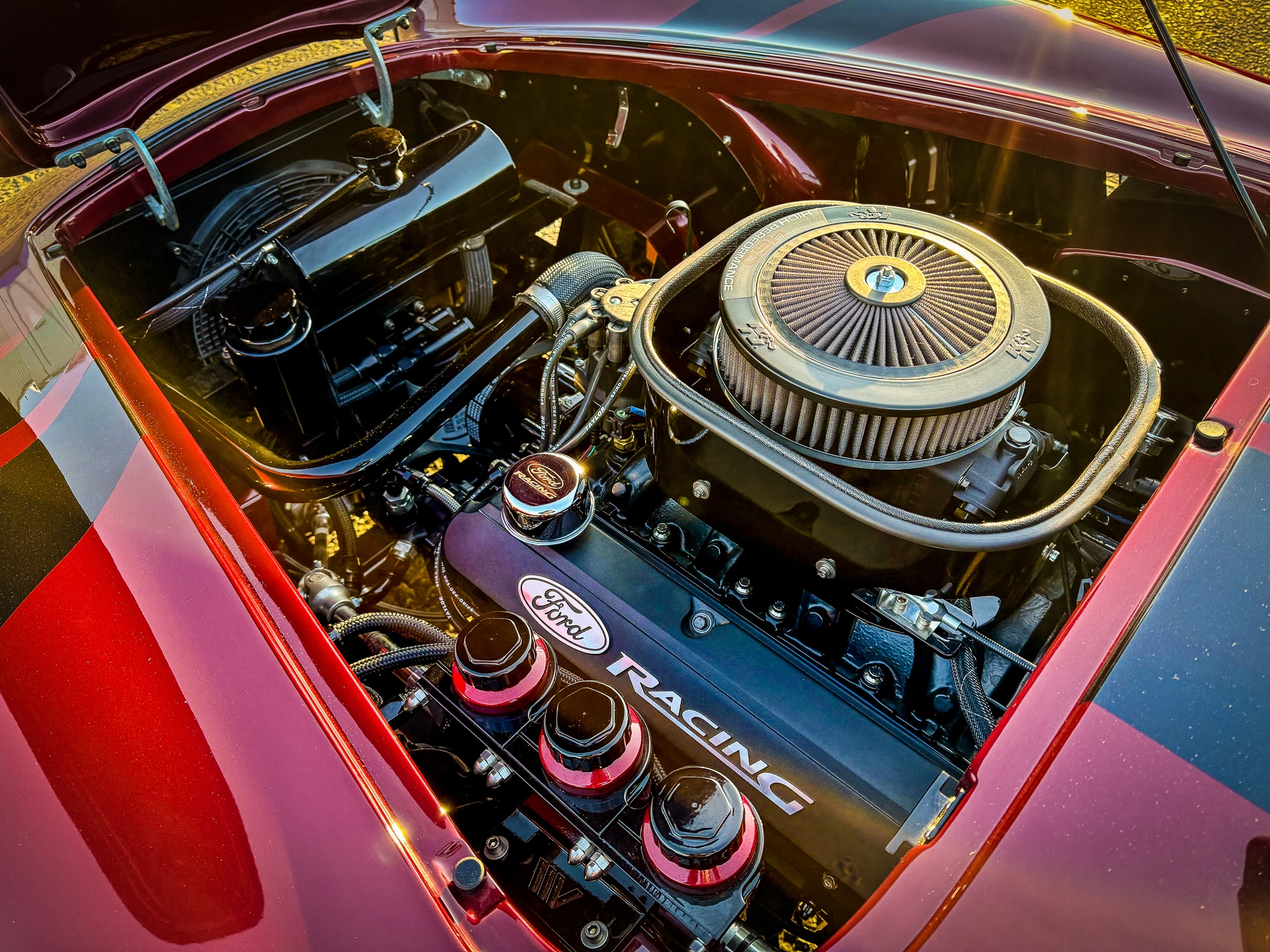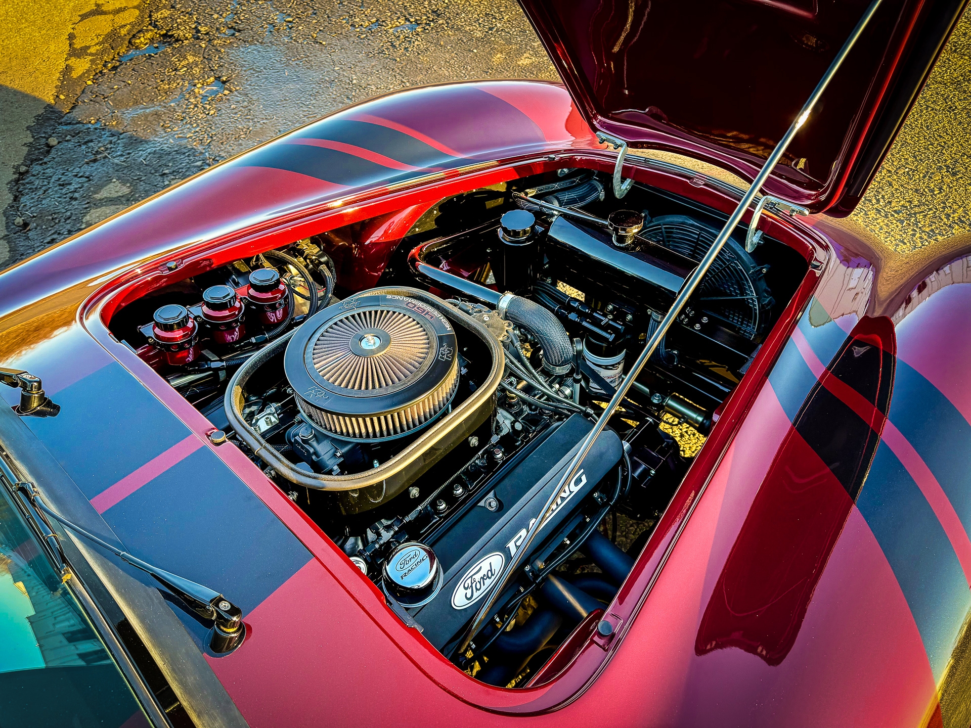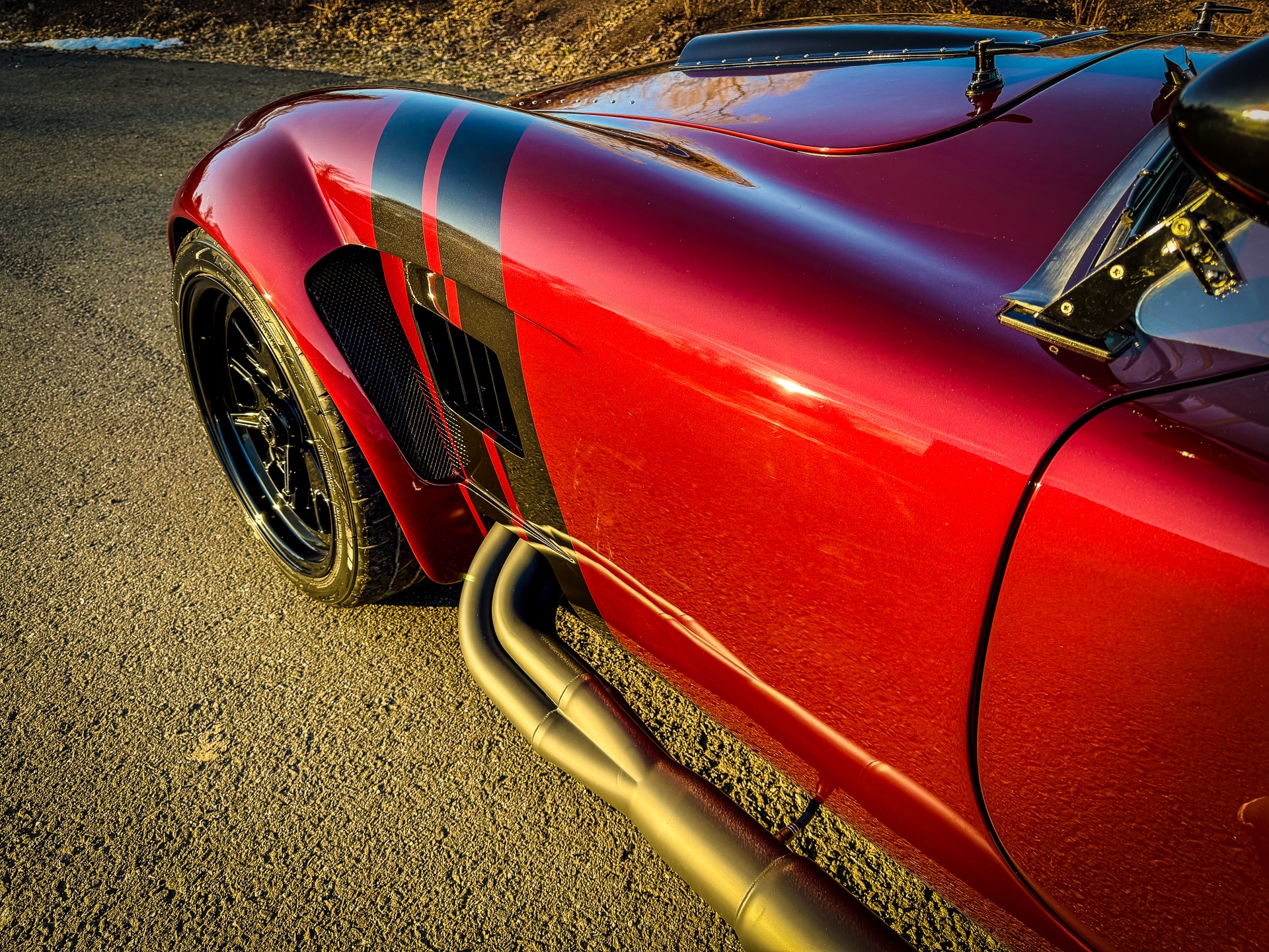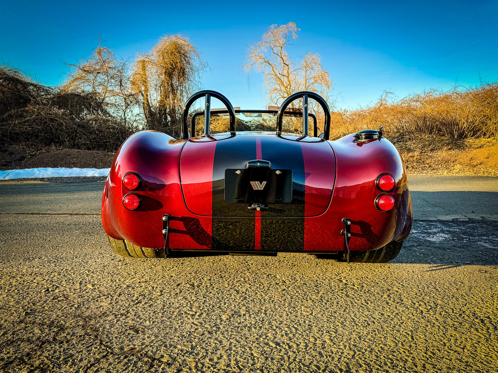 This 1965 Backdraft RT4 roadster was completed by Vintage Motorsports in North Haven, CT in 2022 and has accumulated just over 200 miles. It is powered by a Ford Racing 460ci V8 engine that is rated at 575hp and 575 ft/lbs of torque. The engine is mated to a TREMEC T-56 Magnum 6-speed manual transmission with a McLeod twin-disc clutch and a QuickTime steel bellhousing.