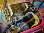 The interior is finished in black with red stitching in a diamond pattern that covers the seats, door panels, the transmission tunnel and up the rear wall. Logos have been deleted from the seats. The carbon dash has been treated to a very limited VMS Aviator Dash Panel with custom switches, LEDs, and of course SpeedHut Instruments.